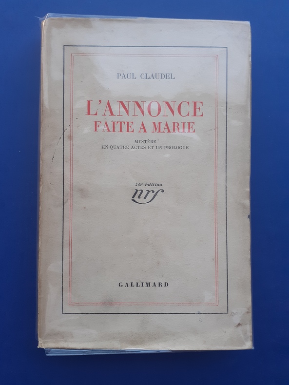 Gallimard 1950 218 pages in12. 1950. broché. 218 pages. L'Annonce faite à Marie est un mystère en quatre actes et un prologue de Paul Claudel situé dans un Moyen Âge de convention. Il raconte le destin de Violaine jeune femme qui après avoir embrassé par compassion Pierre de Craon un architecte lépreux contracte la lèpre et est rejetée par les siens. Sa foi et ses actes surnaturels comme la résurrection de l'enfant de sa sœur Mara en font une figure christique explorant les passions humaines à travers le prisme du catholicisme