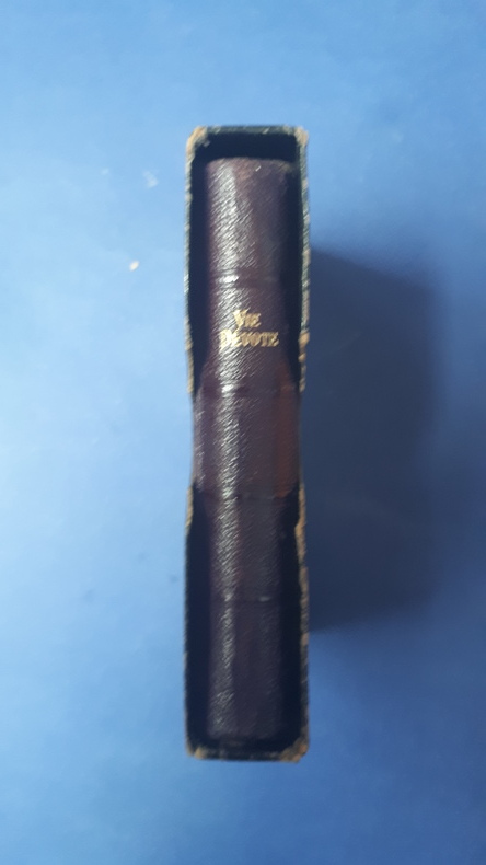 Rouen, Chez la Veuve de Pierre Dumesnil 1792, 170x105mm, relié veau marbré de l’époque, fleurons dorés, pièce de titre, tranches rouge, gardes marbré, dos à cinq faux-nerfs. Nom du possesseur (François de Reynold) sur le haut de la page de garde supérieure. Hormis coins emoussés, bel exemplaire.