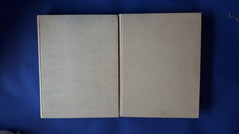 Dans un constant souci d'une fidèle description, il est à noter des rousseurs ( Cf. Photo) sur les tranches supérieures et de légères salissures sur les reliures en toile.
