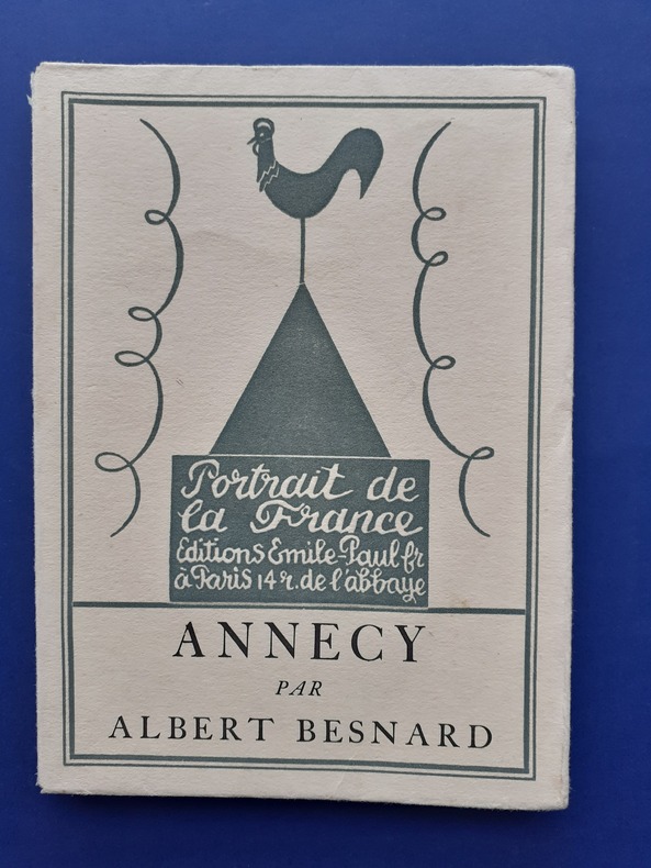 Lyon, Société Lyonnaise de photochromogravure (Couv.) Annecy, Imprimerie Abry, 1900, in-8vo, 80 p., illustré avec le plan d’Annecy, ill. in texte par Montader + 1 carte des environs d’Annecy, plaquette format 20,5x13,5cm, brochure originale illustrée en couleurs (par Louis Guény).