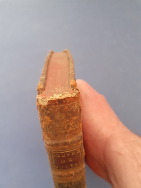 Edition originale, l'Abbé Bazin est le pseudonyme de Voltaire. coins émoussés, queue et coiffe de dos à restaurer pour cette intéressante édition originale de Voltaire. Réf: BB248