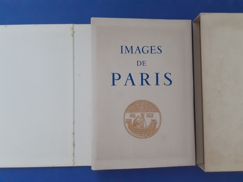 Paris, Les Heures Claires, sans date (1950). Images de Paris. Pointes sèches de Charles Samson. In-8° en feuilles, couverture imprimée (emboîtage de l'éditeur), sous couverture rempliée, chemise et étui carton, non paginé.