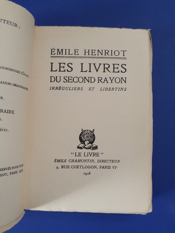 A Paris, ''Le Livre'', 1925. Un fort vol. gd in-8 (232 x 158 mm) de ii - 362 pp., broché, sous couverture à rabats rempliés.