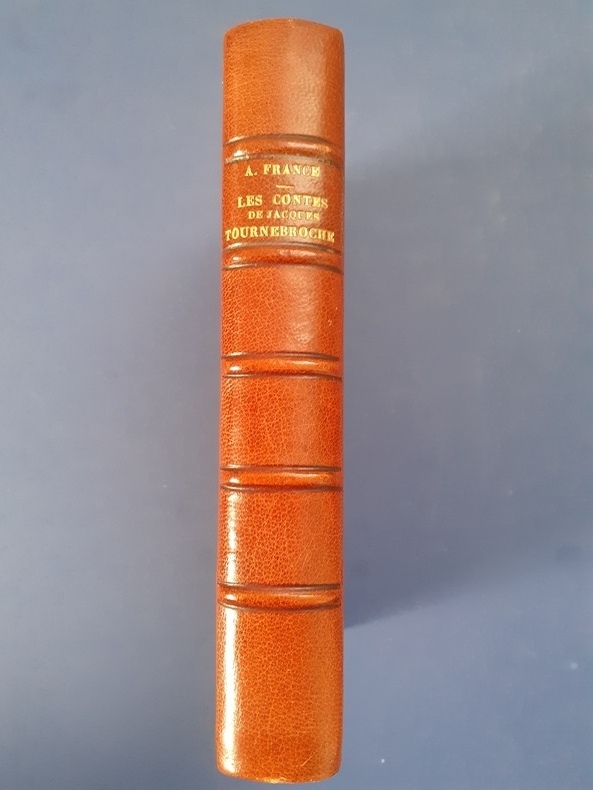 FRANCE (Anatole). Les contes de Jacques Tournebroche. 1 vol. in-12 relié 1/2 chagrin, dos à nerfs, tête dorée, couverture conservée. Paris Calmann-Lévy 1925. Bel ex.
