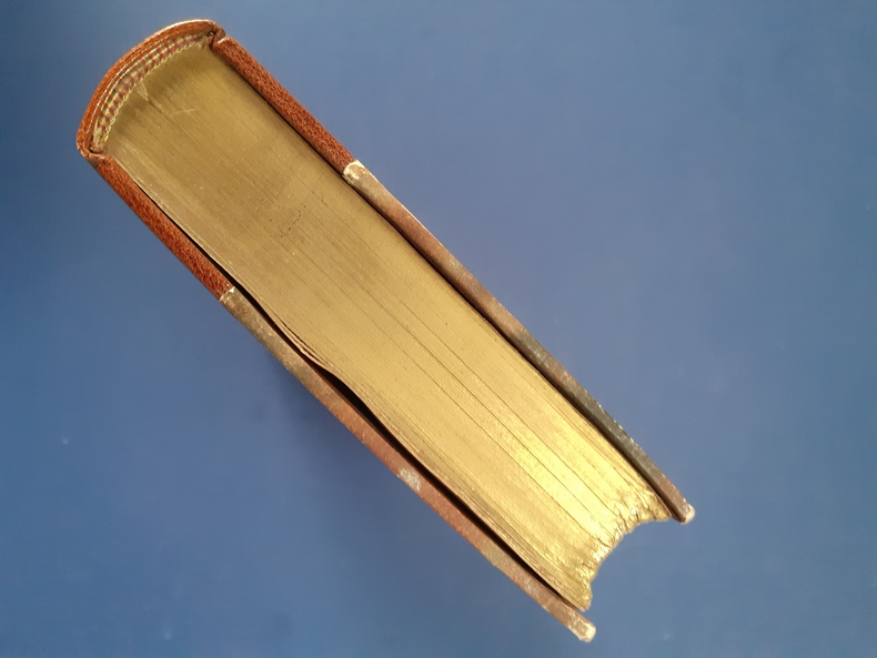 Relié demi-basane fauve, dos à nerfs, tête dorée.