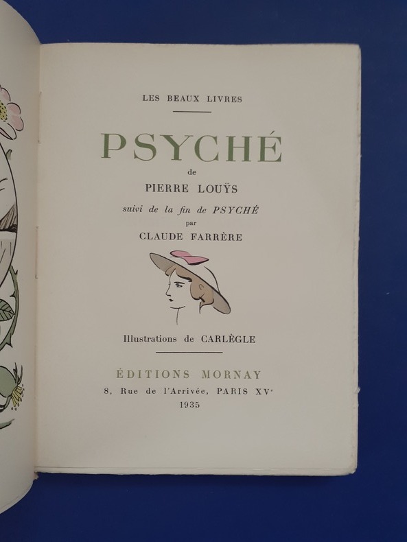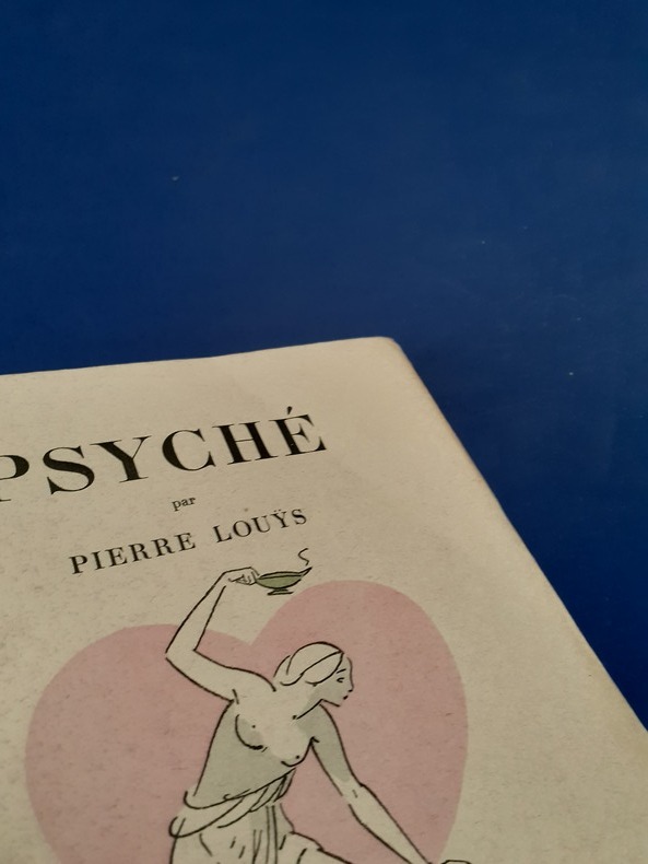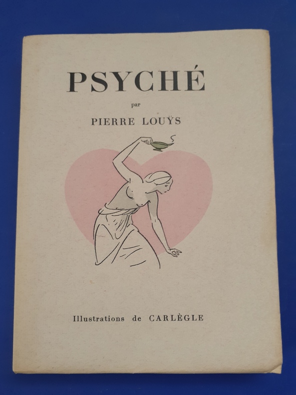 Tirage limité, exemplaire numéroté sur Vélin de Rives. Pierre LOUYS a tiré de l'Antiquité de nombreux récits, Psyché, la jeune femme condamnée à ne pas voir son amour, Eros Deux légers défauts sont à signaler pour ce bel exemplaire, un coin et une "pliure" sur la partie latérale droite de la couverture. "Le pli est très léger". Réf BB629