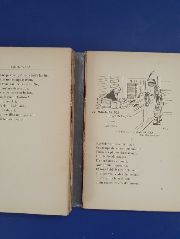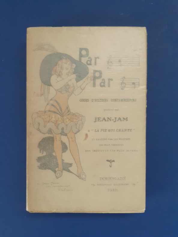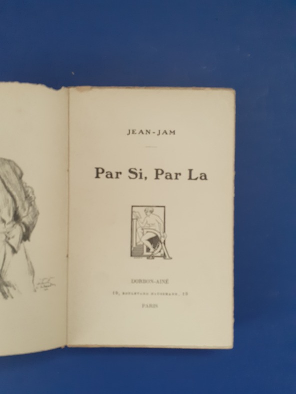 Broché, premier plat illustré en couleurs, sans date, charmante et rare publication, recueil de vers et chansons illustrés en noir et blanc, avec tampon de l'auteur "Jean-Jam" au faux titre. A relier, en l'état