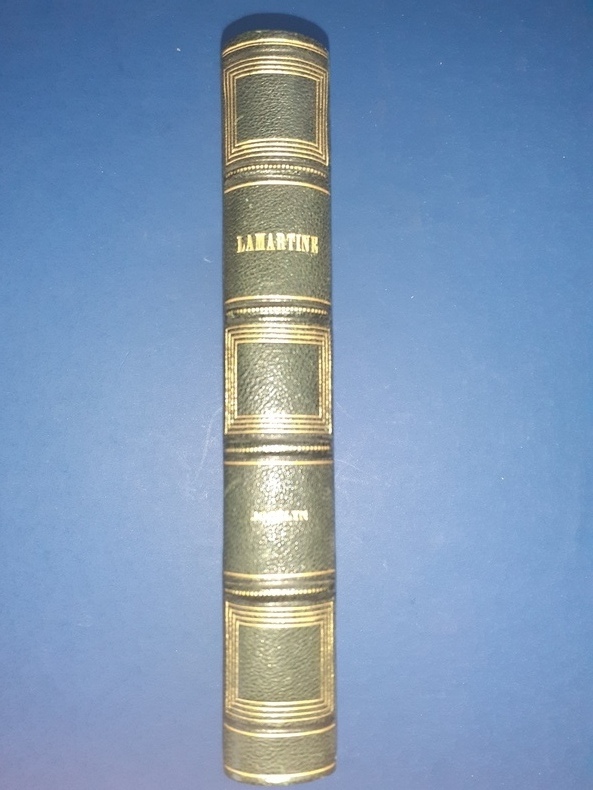 P., Charles Gosselin, Furne et cie, 1841, pt in-4°, (4)-xl-424 pp, introduction par Jules Janin et nouvelle préface de Lamartine, un frontispice et 11 gravures hors texte sous serpentes roses légendées, nombreuses vignettes dans le texte, reliure plein chagrin bordeaux, dos à 4 nerfs filetés soulignés à froid, caissons à froid à décor doré, titres dorés, décor doré et filets à froid d'encadrement sur les plats, coupes filetées, dentelles intérieures dorées, gardes de papier moiré, tranches dorées (rel. de l'époque), bon état. Très bon exemplaire sans rousseurs
