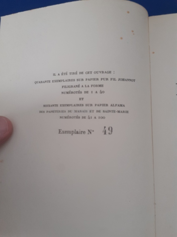 Edition originale. Un des 60 exemplaires sur Alfama numéroté.