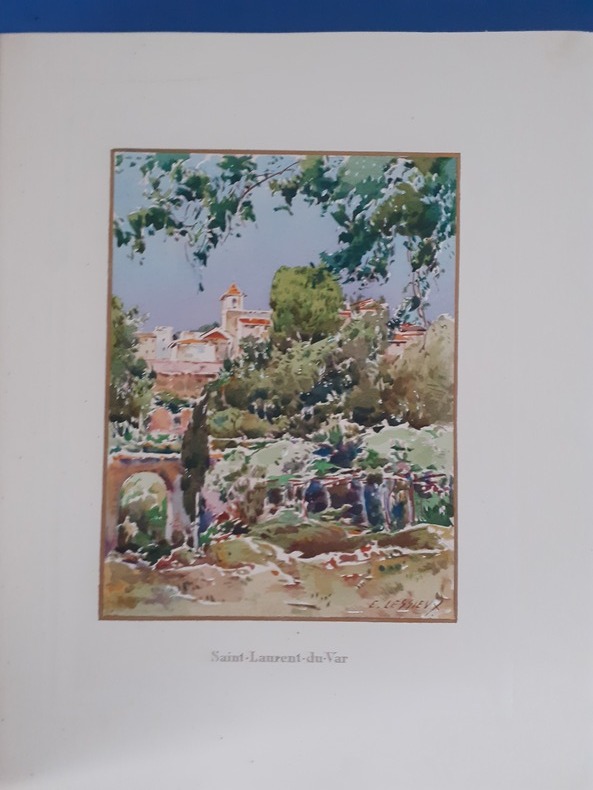 Défaut à signaler en queue du dos. Reliure fragile. Edition originale. Ouvrage consacré au pays Niçois par Dominique Durandy (1868-1920). Le livre est préfacé par Camille Mauclair et les aquarelles hors texte sont de Lessieux. Exemplaire sur papier pur fil lafuma n°219