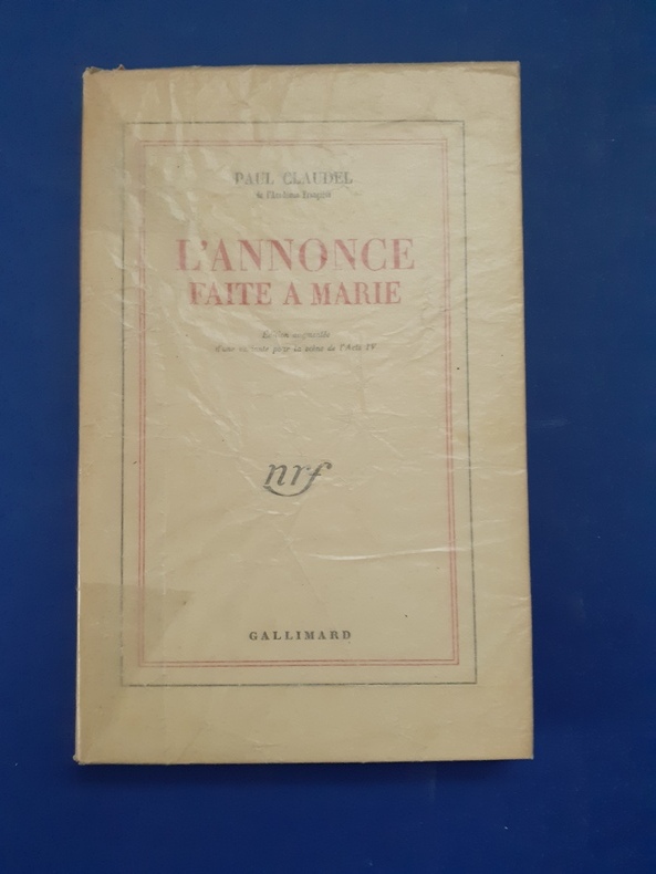 Paris N.R.F Gallimard 1950 in 12 (18x11,5) 1 volume reliure cartonnée de l'éditeur relié d'après la maquette de Paul Bonet (cartonnage légèrement et uniformément insolé), 217 pages [3]. Tiré à 2000 exemplaires numérotés sur vélin des papeteries de Navarre de Voiron. Paul Claudel, Villeneuve-sur-Fère 1868 - Paris 1955, écrivain et dramaturge français. Envoi autographe signé par l'auteur. Bon exemplaire