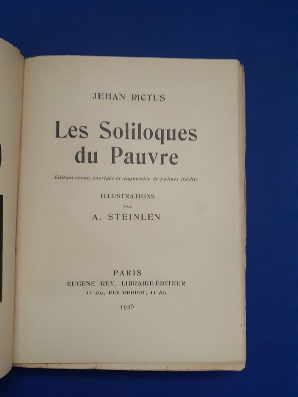 Paris Pierre Seghers, Editeur 1965 in 12 (19x13,5) 1 volume broché, couverture à rabats illustrée, 284 pages, avec des illustrations par Steinlen. Jehan Rictus pseudonyme de Gabriel Randon de Saint-Amand, Boulogne-sur-Mer 1867 - Paris 1933, poète français. Théophile-Alexandre Steinlen, Lausanne 1859 - Paris 1923, artiste, peintre, graveur, et illustrateur suisse. Très bel exemplaire