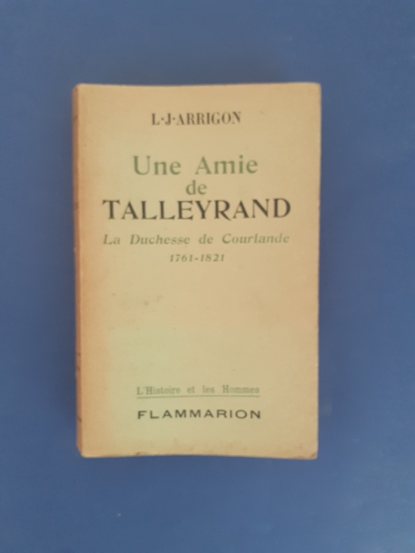 Une amie de Talleyrand. La Duchesse de Courlande (1761-1821) L.-J. ARRIGON Exemplaire du service de presse avec un envoi de l'auteur à Marcel Bouteron Les couvertures originales sont conservées avec le dos. Relié, pleine toile grise, dos orné, 12 x 18 cm, En bon état, 233pp. Bon exemplaire. Paris, Flammarion, 1946 c/84