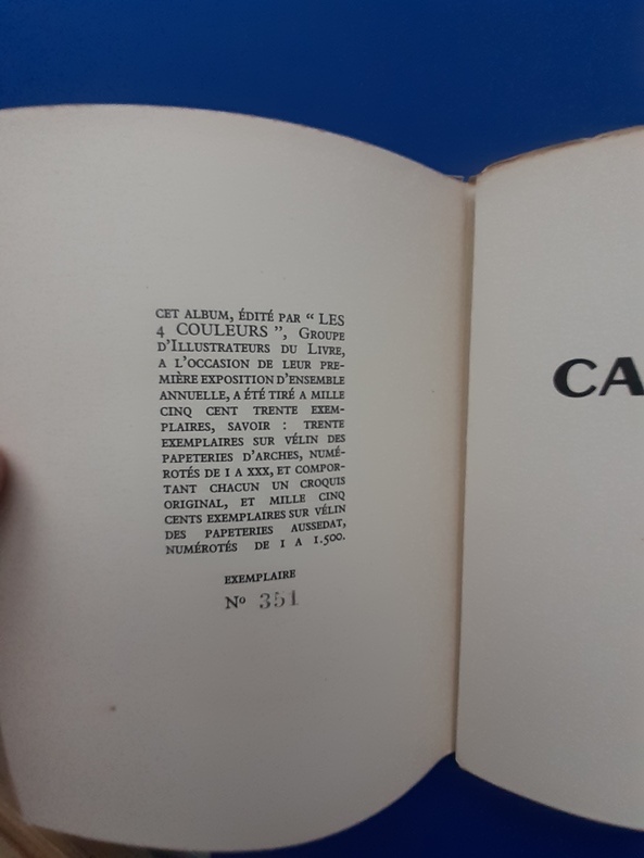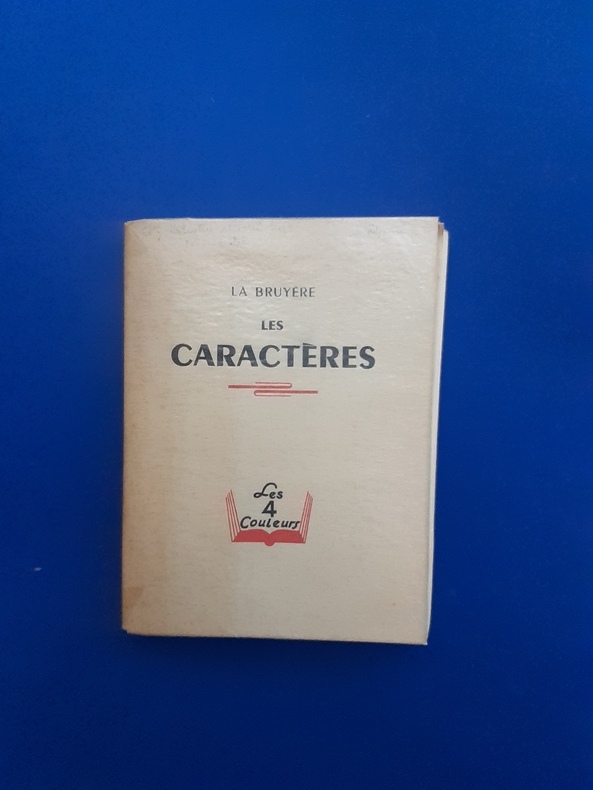 5 pp. + 29 planches., Les 4 Couleurs, 1943 Ouvrage constitué de planches illustrées en noir par différents artistes, représentant les caractères de La Bruyère. Tirage limité à 1530 exemplaires.