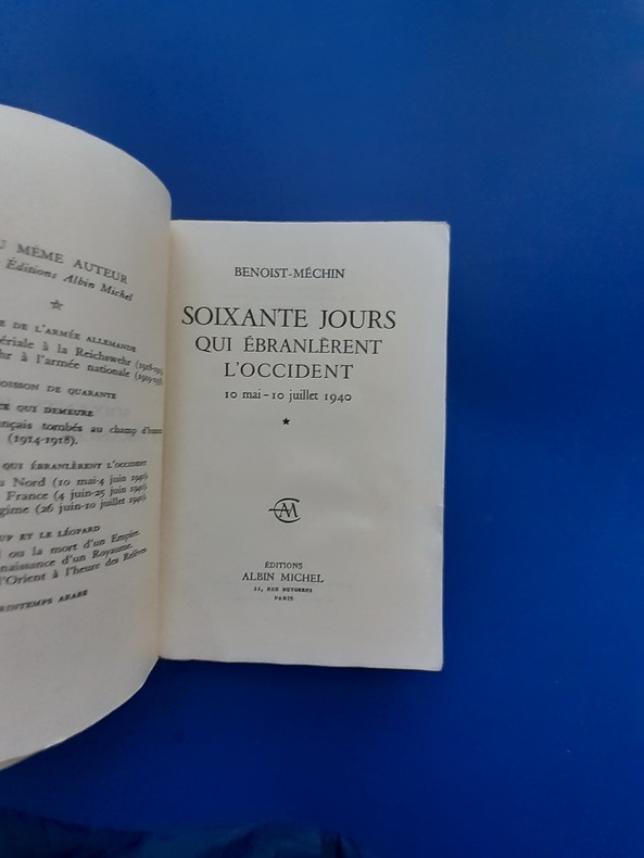 SOIXANTE JOURS QUI EBRANLERENT L'OCCIDENT 10 MAI-10 JUILLET 1940 Benoit-Méchin fort volume , 200x130, couvertures illustrées, 1280pp ,très bel état. Complet. Collection Bouquins 1981