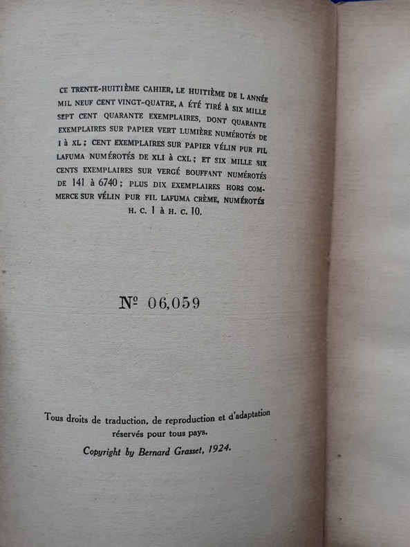 1924 Paris, Bernard Grasset, 1924, In douze, 120 pp, broché, très bon état,