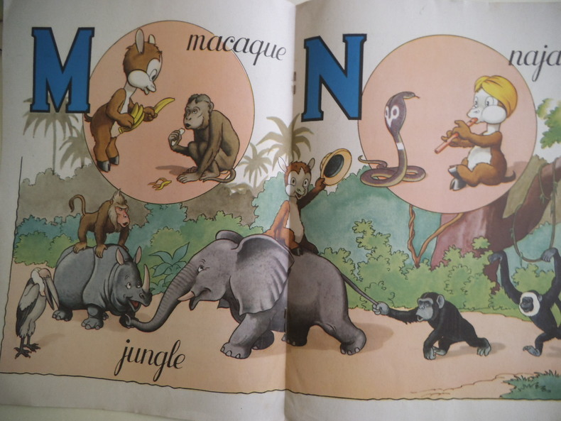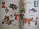 In 4 broché, couverture illustrée en couleurs, 16 pages y compris la couverture, Supplément du mensuel Roudoudou les belles images. Avril 1952. Roudoudou présente 26 animaux portant chacun en initiale une lettre de l’alphabet. Il ne craint pas de chevaucher une autruche, de nourrir un éléphant, de dompter un jaguar etc