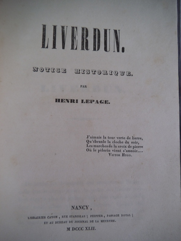 notice historique in 8 demi-cuir foncé, titre filets dorés. Faux-titre, titre, 64 pages. Nancy librairie CAYON 1842 exlibris.suivi monnaie inédite de thomas de Bourlemont frappée à Liverdun et Liverdun historique, pittoresque et industriel au commencement de 1899. Par Aimé LURENT titre, 34 page, 1 page de table des matières. Bien complet de la carte dépliante Très rare