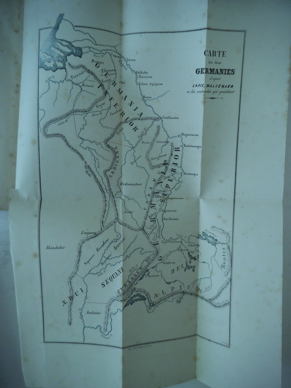 Etude d’histore et de géographie ancienne. In 8 broché, faux-titre, titre, 83 pages, une carte dépliante des 2 Germanies. Durand Libraire 1863 envoi manuscrit autographe de l’auteur.