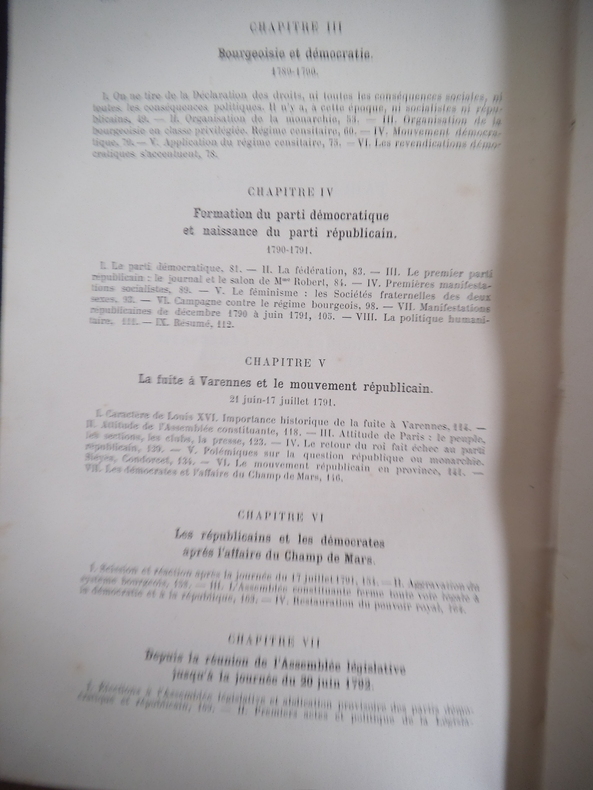 "Je me propose de montrer comment les principes de la Déclaration des droits furent, de 1789 à 1804, mis en oeuvre dans les institutions, ou interprétés dans les discours, dans la presse, dans les actes des partis dans les diverses manifestations de l'opinion publique." (Introduction) Alphonse Aulard (1849-1928) fut le premier à occuper la chaire d'Histoire de la Révolution française à la Sorbonne. Avec table alphabétiques des noms de personnes.