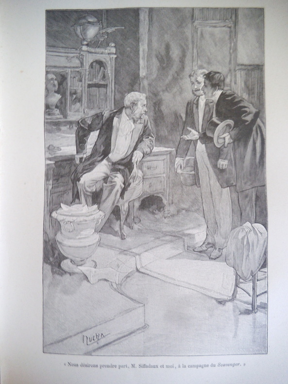 In 4 reliure éditeur pleine toile rouge animée, plaque polychrome avec titre doré au premier plat de Paul SOUZE. Titre et décor dorés au dos. Faux-titre, titre, frontispice, titre, 288 pages, tranches dorées, 20 illustrations hors texte, en noir, y compris le frontispice, de MUCHA. A. MAME & Fils éditeurs à Tours 1900. Bon exemplaire.