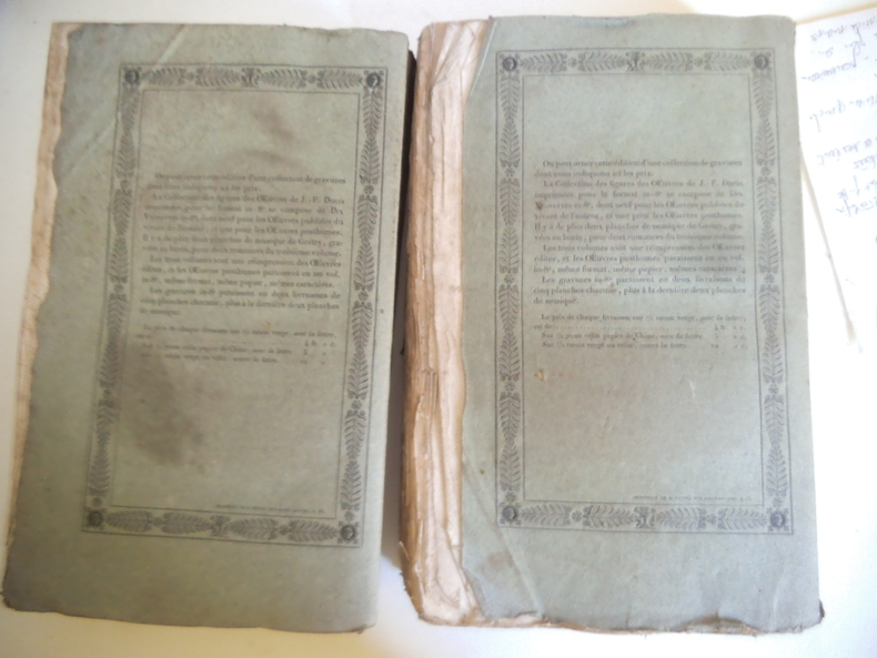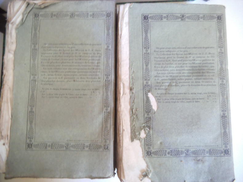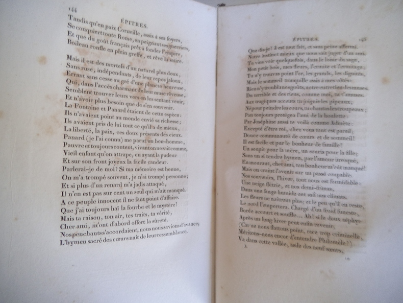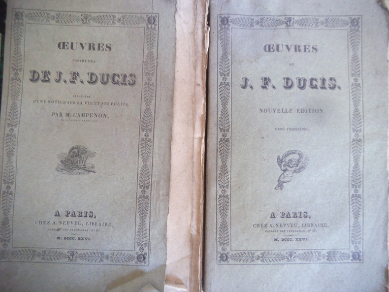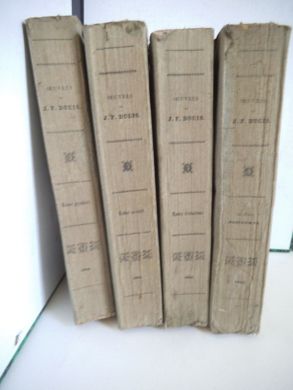 4 tomes en 4 volumes in 8 brochés. 150x235mm. grandes marges. Paris chez A. NEPVEU libraire 1826. Tome 1 : faux –titre, titre, XII- 433 pages plus table. Tome 2 : Faux-titre, titre, 472 pages plus table. (Mouillure angle supérieur droit de la page 425 à la fin du volume). Tome 3 : faux-titre, titre, 506 pages. Tome 4 : œuvres posthumes précédées d’une notice sur sa vie et ses écrits. Faux-titre, titre, XCVIII, 421 pages. Mouillure marge inférieure gauche de la page 368 à la fin du volume. Ouvrage non coupé. Poussiéreux avec des rousseurs éparses, plus ou moins fortes. En l’état