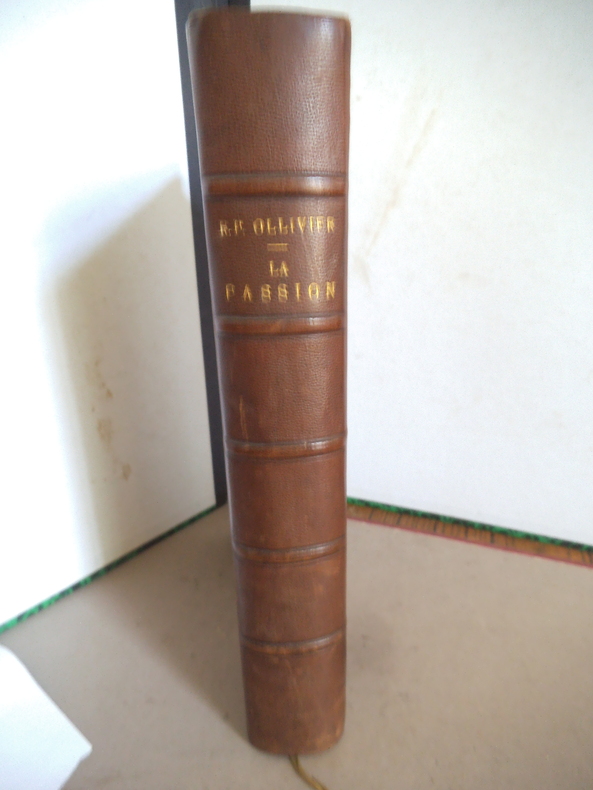 la passion Essai historique In 8 demi-chagrin marron à nerfs et à coins, titre doré. Faux-titre, frontispice sous serpente, 170x245mm, titre, XXIV, plan dépliant de Jérusalem en couleurs, en l’an 34 de JC. 512 pages, illustrations hors texte, tête dorée, non rogné. Paris P.LETHIELLEUX éditeur 1897. Rousseurs en début et fin de volume sinon bon exemplaire.