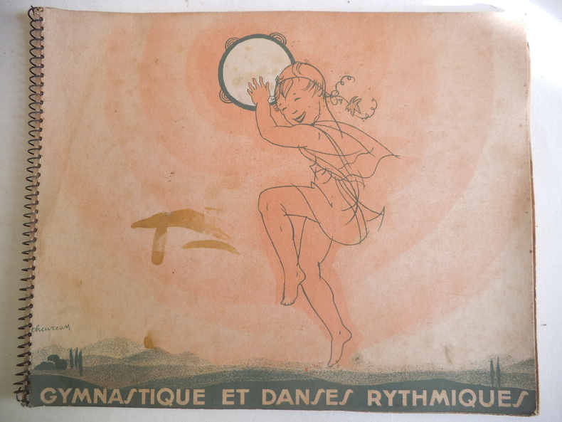 Gymnastique et danse rythmique ; In 8 à l’italienne, dos à spirale 275x215mm ; Couverture cartonné souple illustrée en couleurs. titre ; 80 pages, musique et illustrations 127 figures plus couverture de S.THEURUAU Editions BOURRELIER & Cie 1933. Rousseurs sur les plats couverture, avec une tache claire.