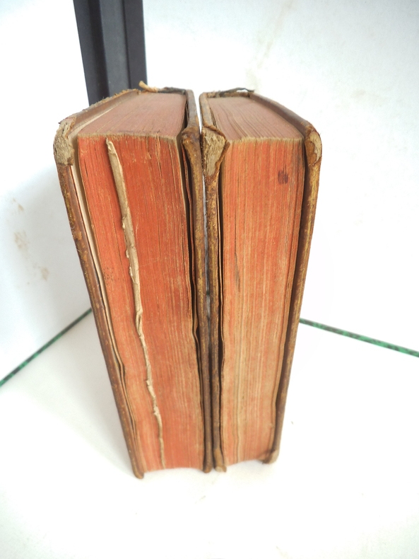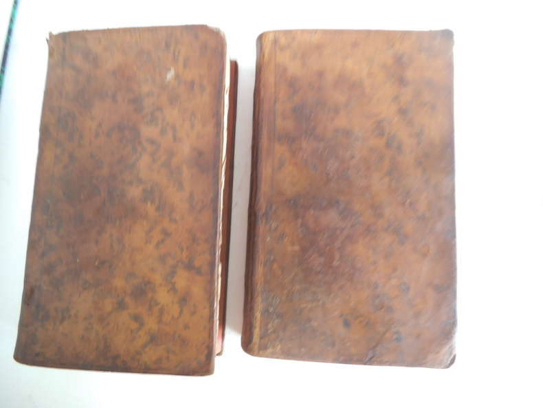 Deux tomes (sur quatre) en deux volumes in 12 plein cuir fauve raciné, pièces de titre et de tomaison cuir vert, filets, roulette, caissons dorés ; roulette dorée sur coupes. Tome premier : faux titre, LXXXIV, 358 pages,. Tome second faux titre, titre, IX 456 pages, tranches rouges. 105x170mm. Paris de l’imprimerie de MOUTARD 1780. Ouvrage incomplet. Poids 650 grammes.