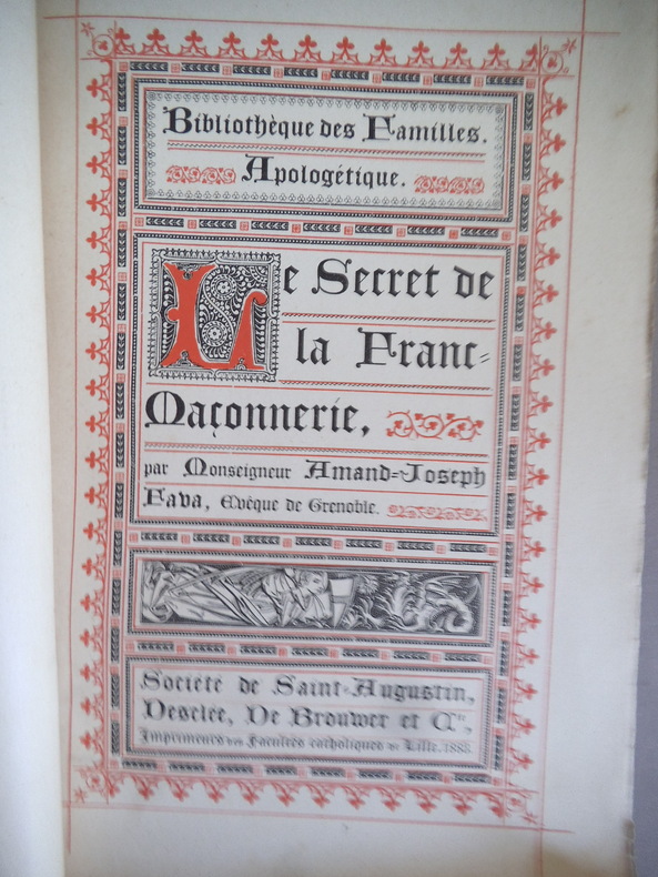 in 8 broché 160x240mm, faux titre, titre, VI, 330 pages, texte encadré d’un filet rouge. Société de Saint Augustin Desclée de Brouwer & Cie 1883. Dos fragile.