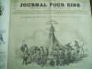 Tête de collection de la série grand format du célèbre journal satirique fondé par Charles Philipon, créateur du Charivari et de la Caricature politique.Le Journal pour rire « peut être considéré comme l'ancêtre des journaux humoristiques ». C'est une des nombreuses publications des éditions Aubert, la plus importante des maisons d'édition de livres et de périodiques illustrés, d'estampes et de lithographies.« Le Journal pour rire paraîtra dans le format des Débats et sera un véritable journal à images, car chaque numéro contiendra quatre immenses pages de dessin. C'est le Musée Philipon transformé en journal hebdomadaire : de la gaieté, toujours, de l'esprit tant qu'on peut, de la politique jamais... grâce aux lois de septembre ».Pourtant le Journal pour rire sera comme toutes les publications de Philipon, républicain, adversaire du socialisme, du communisme et du bonapartisme. Fondé le 4 février 1848, la rédaction ne put éviter les sujets politiques et ce jusqu'au rétablissement de l'Empire. Bertall entre autres s'était spécialisé dans les charges politiques dirigées contre Louis-Napoléon Bonaparte. Le dernier numéro (109) de cette collection est daté du 2 mars 1850. Le journal continuera de paraître jusqu'au 26 septembre 1851, peu de temps avant le coup d'Etat.Principaux caricaturistes : Gustave Doré, Bertall, Nadar, Ed. Morin, E. de Beaumont, Janet-Lange, Morin, Andrieux, Marcellin. Très bon exemplaire ; les livraisons 90 et 91 manquent.Grand-Carteret, 583 ; Jones, 77 ; Watelet, La Presse illustrée en France, 893.