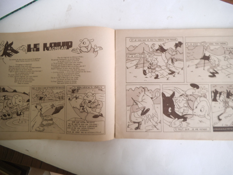 Les fables de La Fontaine vues par H.FOX.In 8 broché à l'italienne 275x210mm éditions I.P.C sans date.Album n°1 16 pages 7 fables,illustrations de H.FOX Le loup et l'agneau-Le lièvre et la tortue-la grenouille et le boeuf-le loup et le chien-le lion et le moucheron-la tortue et les deux canards.(une petite déchirure réparée en marge extérieure du premier plat de couverture