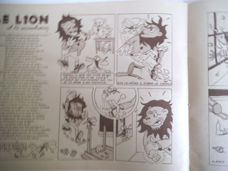 In 8 broché à l'italienne 275x210mm éditions I.P.C sans date.Album n°2 16 pages,7 fables,illustrations de H.FOX Le lion devenu vieux-le lion s'en allant en guerre-le lion malade et le renard-le renard,le singe et les animaux-le lion,,le loup et le renard-la cour du lion, le lion et l'âne chassant.Très bon état, rare