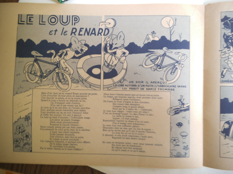 In 8 broché à l'italienne 275x210mm éditions I.P.C sans date.Album n°1 16 pages 8 fables,illustrations de H.FOX Le renard et le bouc-le corbeau et le renard-le renard et la cigogne-le renard et les raisins-le renard,le loup et le cheval-le compert le renard-le coq et le renard