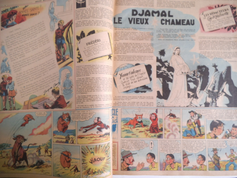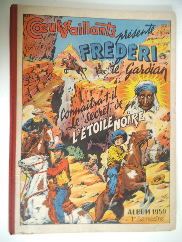 album 1950 année complète premier et deuxième semestre.Deux volumes In folio cartonnés,dos pincés rouges,premier plat illustré en couleurs Premier semestre:n°1 Dimanche 1er janvier 1950 au n°26 dimanche 25juin 1950.8 pages illustrées en noir et en couleurs.BREYSSE(Oscar Amel),St OGAN,Frédéri le guardian,JOUBERT etc.Deuxième semestre:n°27 2 juillet 1950 au n°52 Dimanche 31 décembre 1950