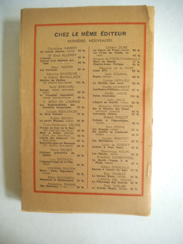 Tome 1.In 12 broché,190x120mm,faux titre,frontispice dépliant sur papier couché,titre,348 pages,achever d'imprimer le 15 mars 1944.Les éditions DENOËL.Edition originale sur papier ordinaire.Bon exemplaire