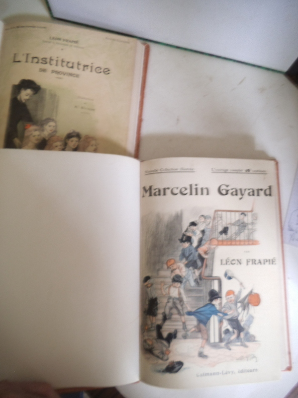 Deux volumes.1)L'institutrice de Province Illustrations en noir de STEINLEIN,texte sur 2 colonnes,Moderne Bibliothèque ARTHEME FAAYRD éditeur sans date.Couverture illustrée en couleurs.Un volume in 8 pleine toile,titre en long au dos 170x240mm.Très bon état.2) Marcelin GAYARD illustrations en noir de LOBEL RICHE,126 pages,texte sur 2 colonnes couverture illustrée en couleurs,conservée.Un volume in 8 pleine toile, titre en long au dos 170x240mm.Très bon état. Les deux volumes