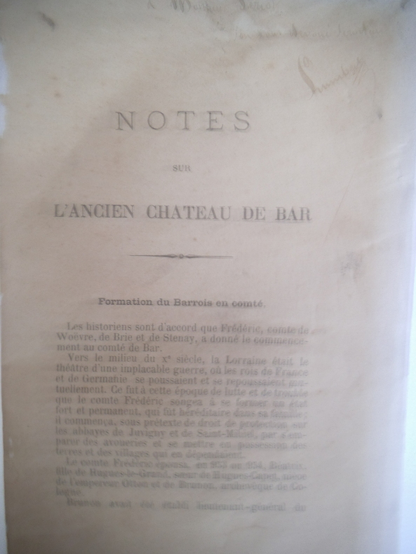 In 8 broché,couverture à rabats,165x250mm,faux titre, frontispice:vue de Bar vers1653.Titre,336 pages,1 page d'errata.23 illustrations hors texte.Contant Laguerre libraire éditeur 1896.(en grande partie extrait des mémoires de la Société des Lettres Sciences et Arts de Bar le Duc 1896 tome 5 troisième série.On joint:HUMBERT Notes sur l'ancien château de bar in 8 broché,135x210mm,couverture souple muette,31pages,envoi manuscrit autographe,à la plume signé HUMBERT