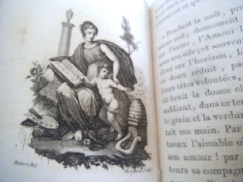 In 32 demi cuir fauve,dos lisse,titre,fers,roulette dorés.Faux-titre,titre orné d'une jolie vignette gravée, titre 128 pages.4 gravures hors texte dessin de HUBERT, gravure de DELIGNON.(pointe sèche et burin)A Paris chez le Fuel Libraire Rue St Jacques,sans date,bon état.