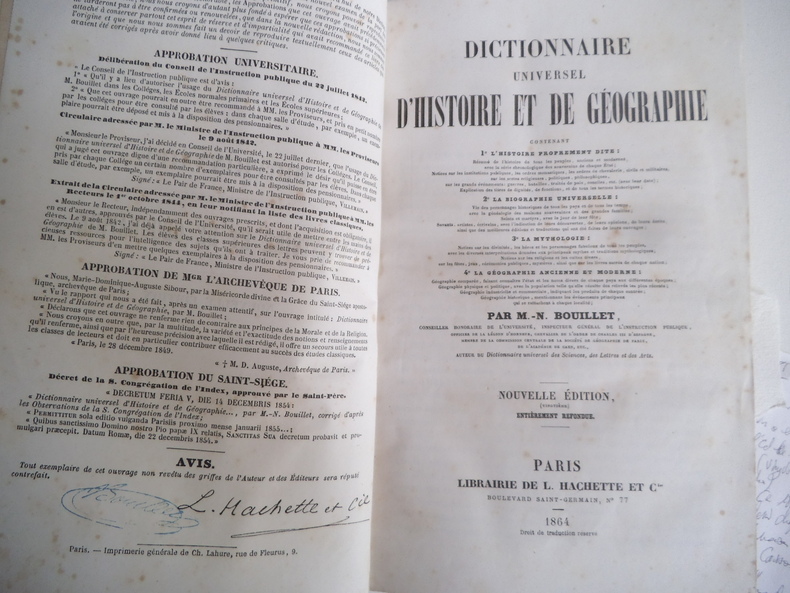 Dictionnaire Universel D'histoire et De Geographie par M.-N. Bouillet. Nouvelle édition. Paris, Librairie De L. Hachette et Cie, 1863.