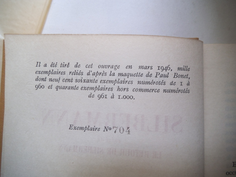 Gallimard In-12 Couverture rigide Paris 1946 Ed. numérotée