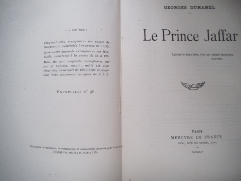 Sans date. Georges Duhamel: Le Prince Jaffar/ Les Compagnons du Livre non daté . Georges Duhamel: Le Prince Jaffar/ Les Compagnons du Livre non daté