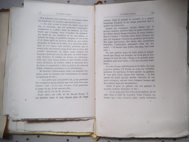 Auteur : Georges Duhamel Titre : Le Prince Jaffar Éditeur : Paris, Mercure de France, XXVI, rue de Condé Année : 1924 Édition : Dix-septième édition Reliure : Demi-maroquin brun à coins, dos à nerfs orné de titres dorés, plats de papier marbré Format : In‑12, env. 18 x 12 cm Langue : Français État : Bon. Légers frottements au dos et aux coins, petites éraflures au papier marbré, papier uniformément bruni avec rares rousseurs, volume solide Description : Réimpression soignée du roman de Duhamel au Mercure de France. Page de justification indiquant les tirages sur grands papiers ; exemplaire de l’édition courante en jolie reliure artisanale