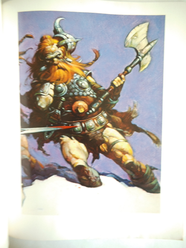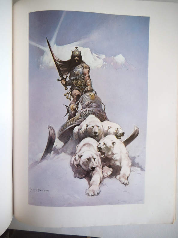 Editions du Chêne 1977. In-4 broché, non paginé, d'environ 80 pages, au format 28,5 x 23 cm. Superbes couvertures illustrées. Dos carré avec titre. Plats et intérieur frais. Préface de Betty Ballantine. Recueil de superbes illustrations de Frank Frazetta à pleine page, en noir et en couleurs. Tirage sur couché. Edition originale française, imprimée aux états-unis. Très bel état général.