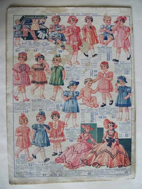 1938 un catalogue, broché (agraphé) in-quarto (18 x 25 cm), couverture illustrée en couleurs par CHAPERON Jean, orné de trés nombreuses gravures en noir de jouets, 37 pages (dont 8 pages de jouets), 1938 Paris Magasins "LA SAMARITAINE" Editeur,