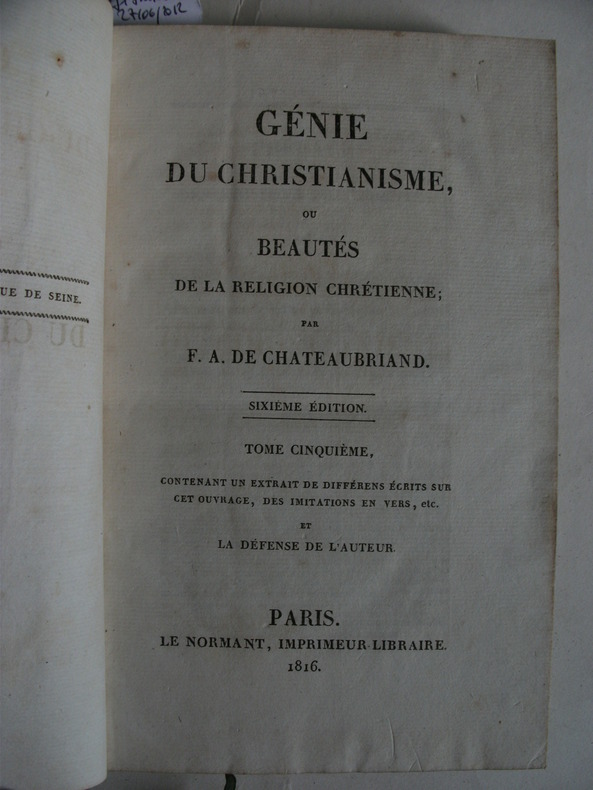 Chateaubriand Génie du Christianisme ou Beautés de La Religion Chrétienne 1819