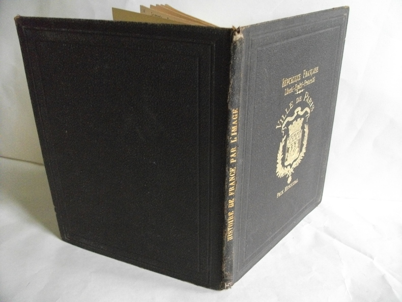 cours préparatoire et première année du cours élémentaire. Petit in 8 carré,reliure éditeur pleine toile marron chagrinée,titre doré en long,au dos, armes de la ville de Paris sur le premier plat,filets à froid en encadrement. Titre,36 pages dont 32 d’illustrations en noir(4)et en couleurs(28) de Ferdinand RAFFIN. Librairies-Imprimeries Réunies,sans date,très légères traces d’usure aux charnières,sans gravité,sinon très bon état