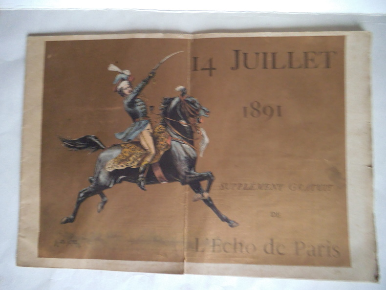 In 8 broché à l’italienne,couverture illustrée avec titre, sur fond doré, de R. de La Nézière;28 pages y compris la couverture.Texte sur 2 colonnes,11 illustrations à pleine page en noir et en couleurs par POIRSON etc. 1 illustration pleine page,publicité pour La Bourboule, Vichy etc.Publicités en début et fin de volume.Une trace de pliure à tout le volume.Cependant bon ensemble peu courant.