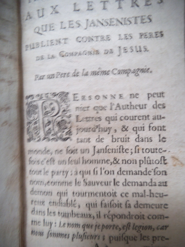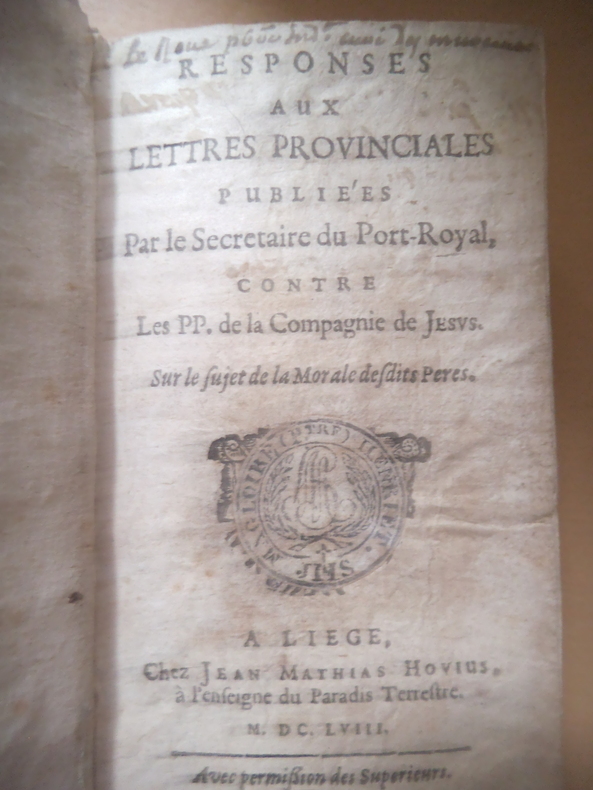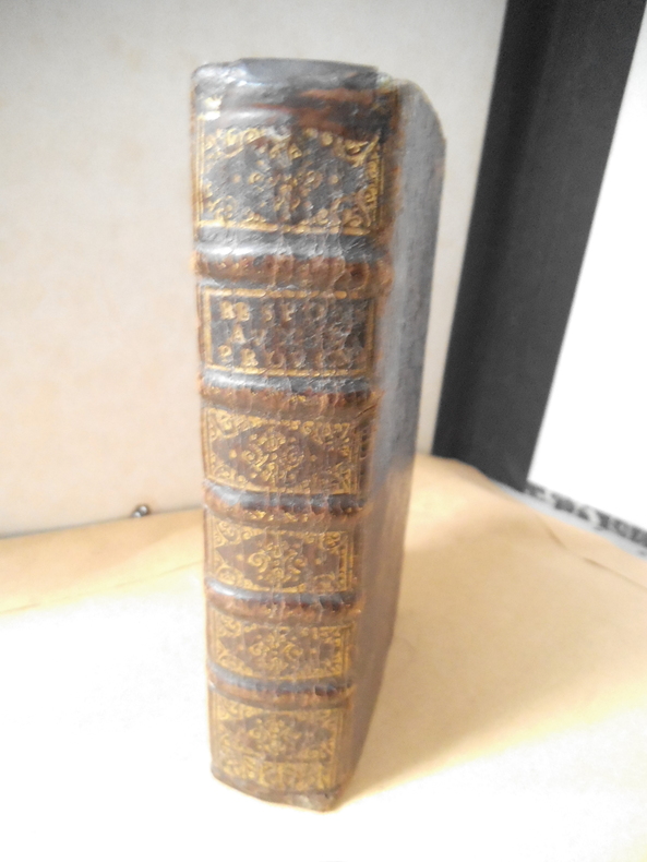 In 16 plein cuir fauve à nerfs,titre et fers dorés.titre et 532 pages,6 pages de table des matières et approbation.tranches jaspées.Jean Mathias Hovius à l’enseigne du Paradis terreste-Liège 1658.Bon exemplaire,contient la plus péremptoire réfutation de toute la doctrine janséniste