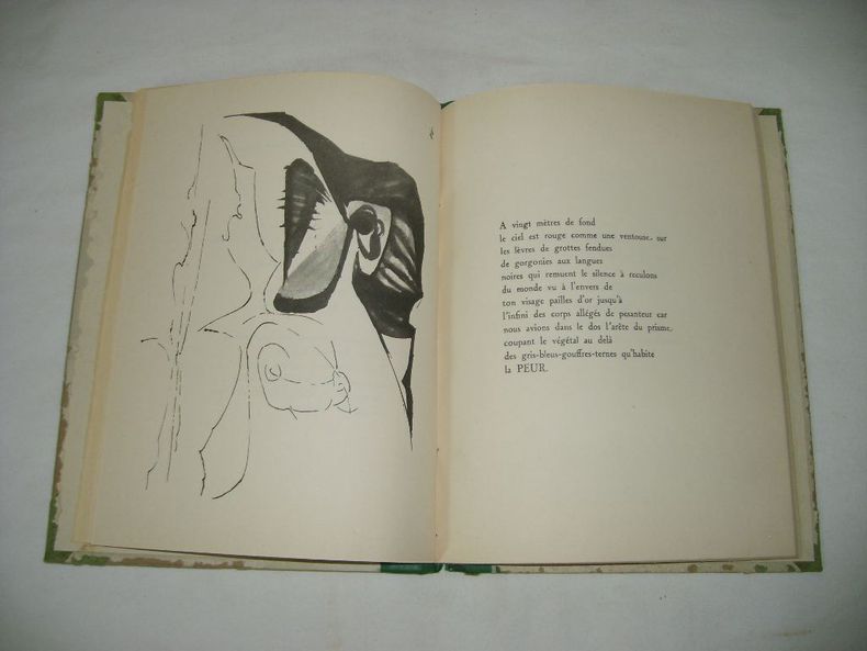 Editions le Musée d'Antibes, 1956, 16 X 21 cm., relié, 25 feuillets non chiffrés. Préface d'André BRETON, dessins hors-texte en noir de Pierre GASTAUD. Envoi de l'auteur à un ami. Couverture illustrée contrecollée sur une reliure ordinaire et usagée, avec trace d'humidité et mors partiellement fendu sur le plat inférieur. Petits manques sur la page de garde contenant l'envoi. Ouvrage rare.